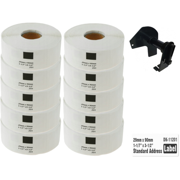 10 x Etykiety do Brother DK-11201 czarny nadruk na białym tle, 29mm x 90mm 400szt etykiet na rolce WYMIENNY UCHWYT