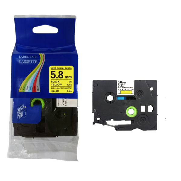 Opis produktu: Rurka termokurczliwa do Brother Hse-611 5.8mm 1.5m [fi]1.7mm-3.2mm żółta rurka czarny nadruk marki Fullprint