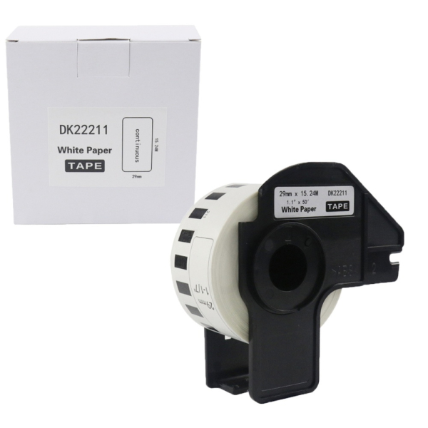 Wysokiej jakości taśma do Brother DK-22211 czarny nadruk na białym tle, 29mm x 15,24 metrów na rolce FOLIOWA marki FullPrint to ekonomiczne i niezawodne rozwiązanie dla Twojej drukarki. Kompatybilny z wieloma modelami drukarek.