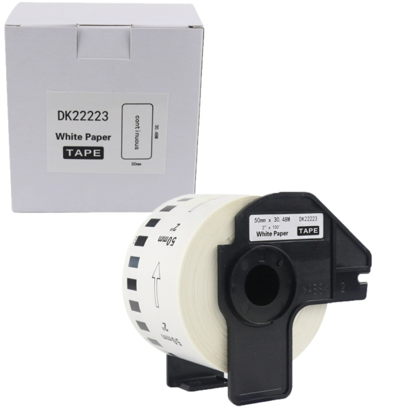 Wysokiej jakości etykiety do Brother DK-22223 czarny nadruk na białym tle, 50mm x 30,48 metrów na rolce marki FullPrint to ekonomiczne i niezawodne rozwiązanie dla Twojej drukarki. Kompatybilny z wieloma modelami drukarek.