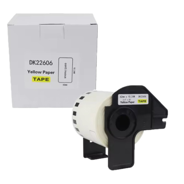 Wysokiej jakości taśma do Brother DK-22606 czarny nadruk na żółtym tle, 62mm x 15,24 metrów na rolce ŻÓŁTA marki FullPrint to ekonomiczne i niezawodne rozwiązanie dla Twojej drukarki. Kompatybilny z wieloma modelami drukarek.