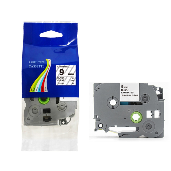 Opis produktu: Taśma do Brother TZe-121 9mm 8m przeźroczysta taśma czarny napis