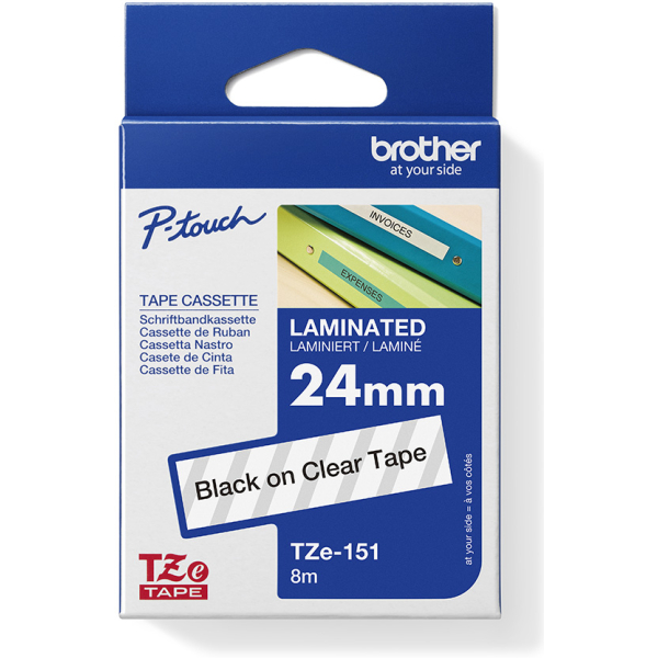 Taśma do Brother TZe-151 24mm 8m przeźroczysta taśma czarny napis oryginalna