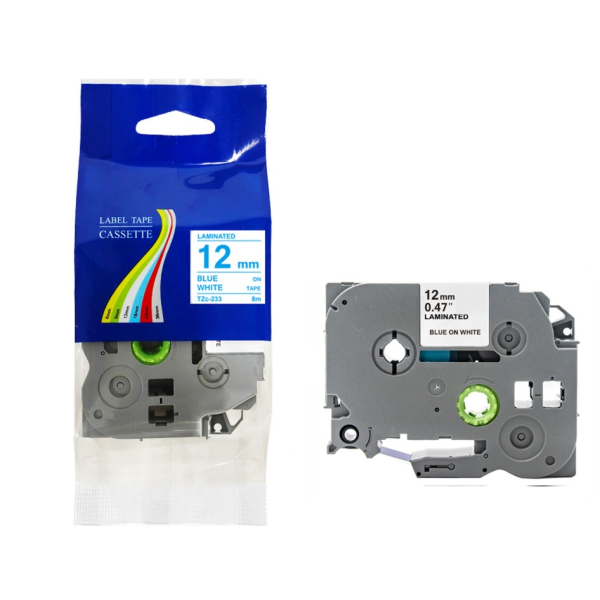 Taśma do Brother TZe-233 12mm 8m biała taśma niebieski napis