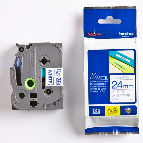 Taśma do Brother TZe-253 24mm 8m biała taśma niebieski napis oryginalna