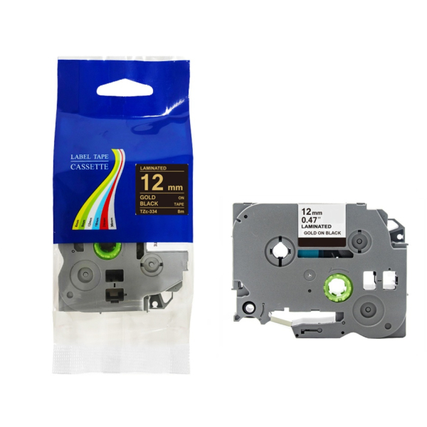 Wysokiej jakości taśma do Brother TZe-334 12mm 8m czarna taśma złoty napis marki FullPrint to ekonomiczne i niezawodne rozwiązanie dla Twojej drukarki. Kompatybilny z wieloma modelami drukarek.