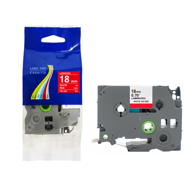 Taśma do Brother TZe-445 18mm 8m czerwona taśma biały napis