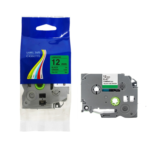 Taśma do Brother TZe-731 12mm 8m zielona taśma czarny napis