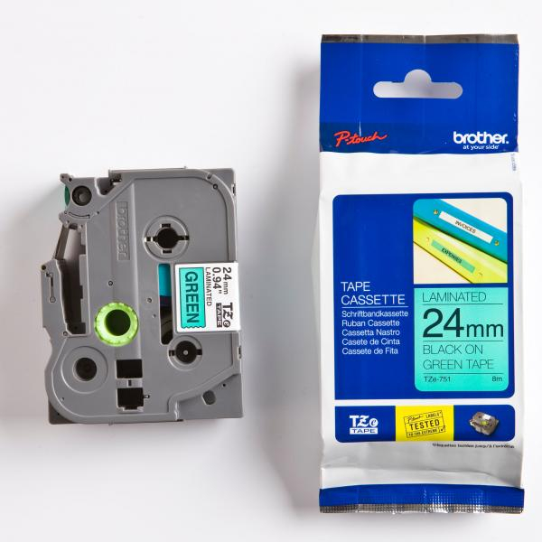 Taśma do Brother TZe-751 24mm 8m zielona taśma czarny napis oryginalna