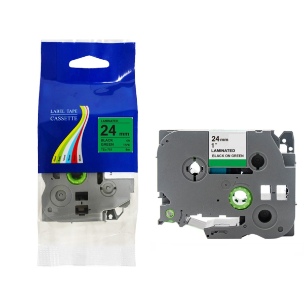 Taśma do Brother TZe-751 24mm 8m zielona taśma czarny napis