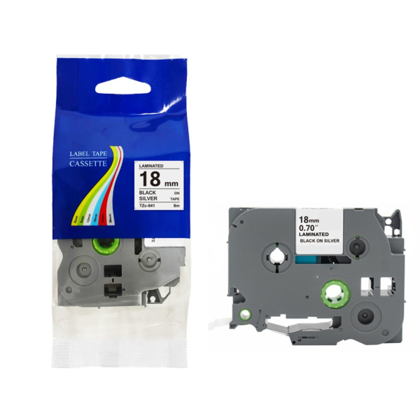 Opis produktu: Taśma do Brother TZe-941 18mm 8m srebrna taśma czarny napis
