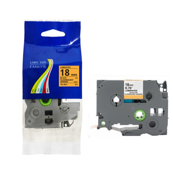 Opis produktu: Taśma do Brother TZe-B41 18mm 8m pomarańczowa taśma czarny napis fluorescencyjna marki Fullprint