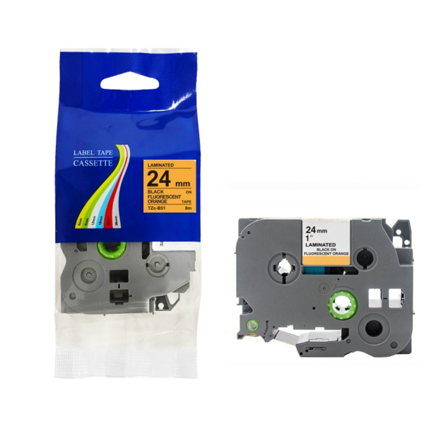 Taśma do Brother TZe-B51 24mm 8m pomarańczowa taśma czarny napis fluorescencyjna sprawdzi się idealnie przy: