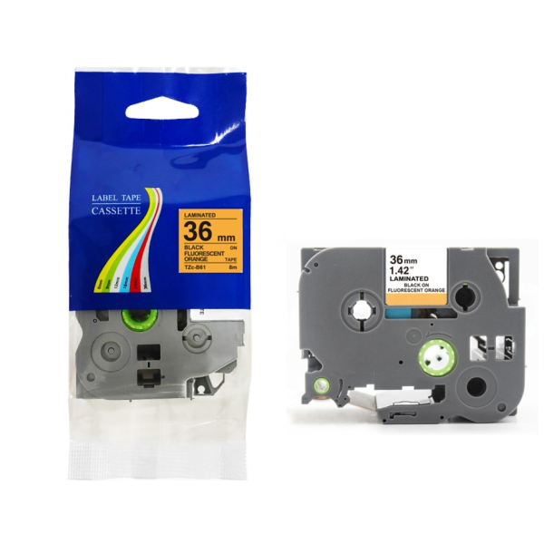 Taśma do Brother TZe-B61 36mm 8m pomarańczowa taśma czarny napis fluorescencyjna sprawdzi się idealnie przy: