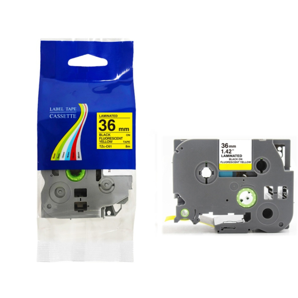 Taśma do Brother TZe-C61 36mm 8m żółta taśma czarny napis fluorescencyjna sprawdzi się idealnie przy: