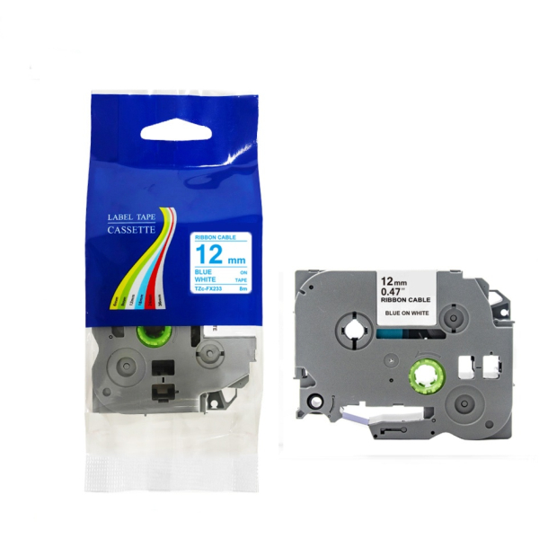 Taśma do Brother TZe-FX233 12mm 8m biała taśma niebieski napis flexi elastyczna sprawdzi się idealnie przy: