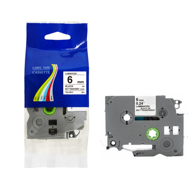 Opis produktu: Taśma do Brother TZe-M11 6mm 8m MATOWA przeźroczysta taśma czarny napis