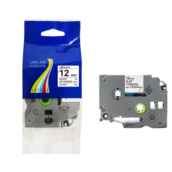 Taśma do Brother TZe-M31 12mm 8m MATOWA przeźroczysta taśma czarny napis