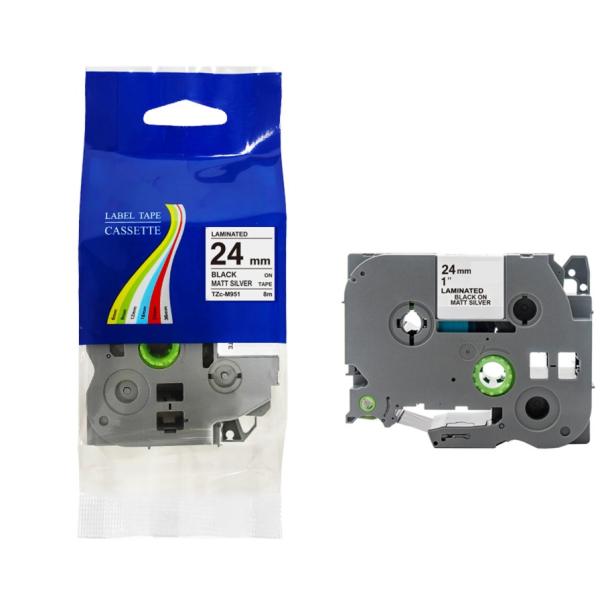 Taśma do Brother TZe-M951 24mm 8m MATOWA srebrna taśma czarny napis