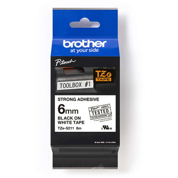 Taśma do Brother Tze-S211 6mm 8m biała taśma czarny napis mocny klej strong oryginalna