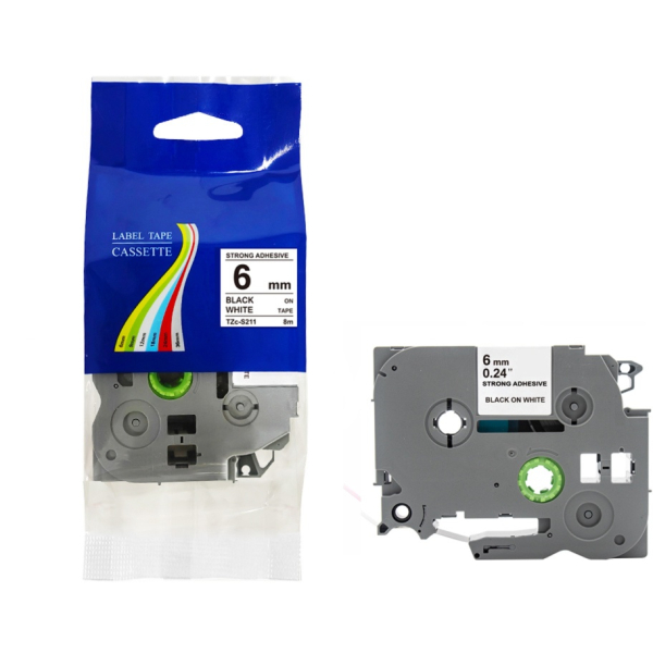 Opis produktu: Taśma do Brother Tze-S211 6mm 8m biała taśma czarny napis mocny klej strong marki Fullprint