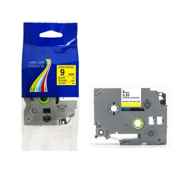 Taśma do Brother TZe-S621 9mm 8m żółta taśma czarny napis mocny klej strong sprawdzi się idealnie przy: