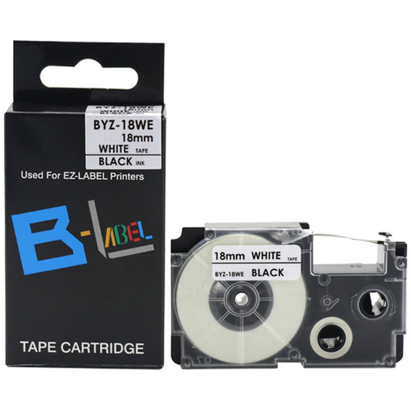 Taśma do Casio XR-18WE 18mm 8m biała taśma czarny napis